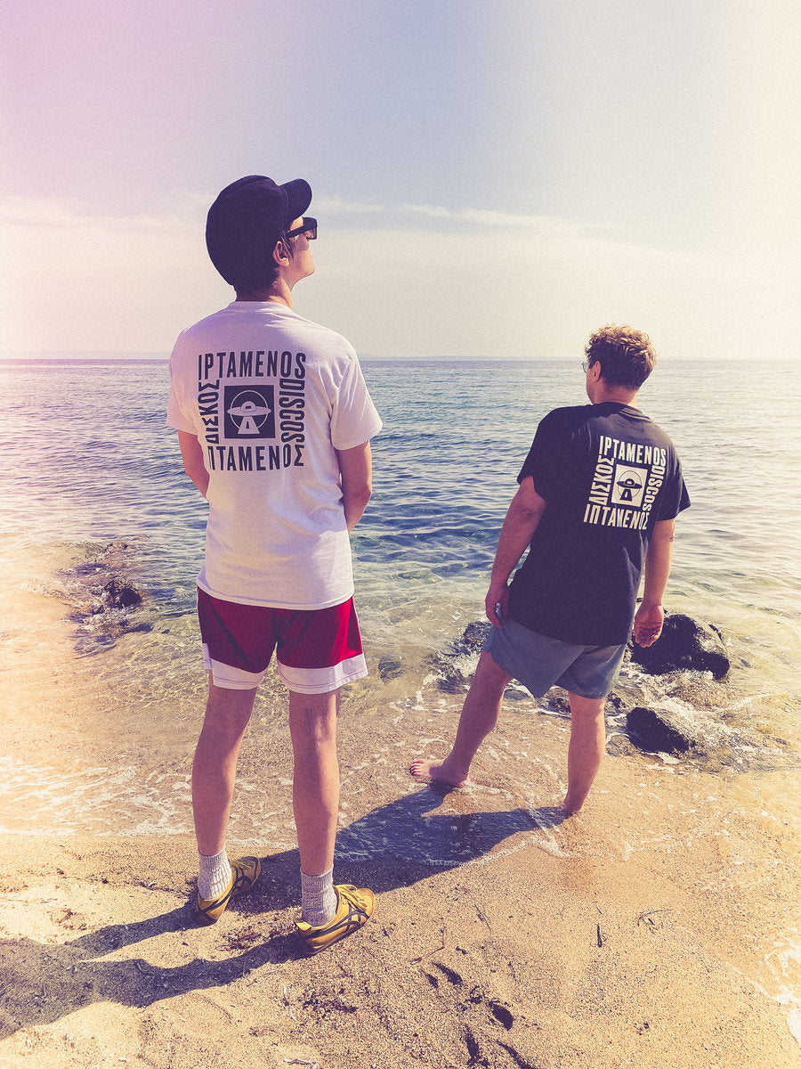 Black print on white Gildan shirt available in various sizes. Designed by Benedikt Demmer at Druckwelle Design.